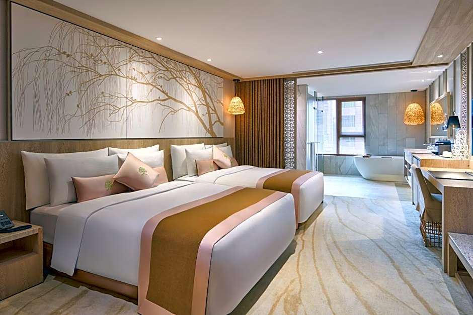 Decorated in soft and earthy tone, this family room features air conditioning and views of Taipei City. For guests' comfort, branded beddings and sofa are provided. Extras offer a flat-screen TV, refrigerator, The private bathroom has shower facilities, bathtub, and hairdryer.
