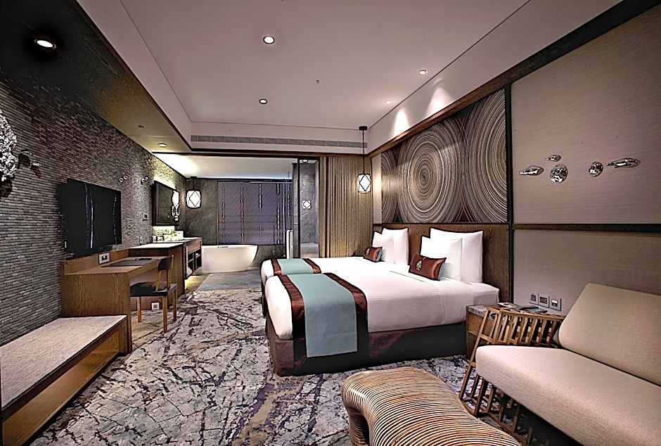 Room options span a broad mix, including Superior (Queen/Twin), Deluxe Queen, Deluxe Twin, Quadruple Room with Pool View, and various Family configurations. Some layouts accommodate larger groups—one Family option fits up to 8 adults and 4 children—and many configurations offer appealing views, including pool or sea views. With a location about from Taipei’s city center, this setup is well-suited for couples, families, and groups seeking flexible choices.